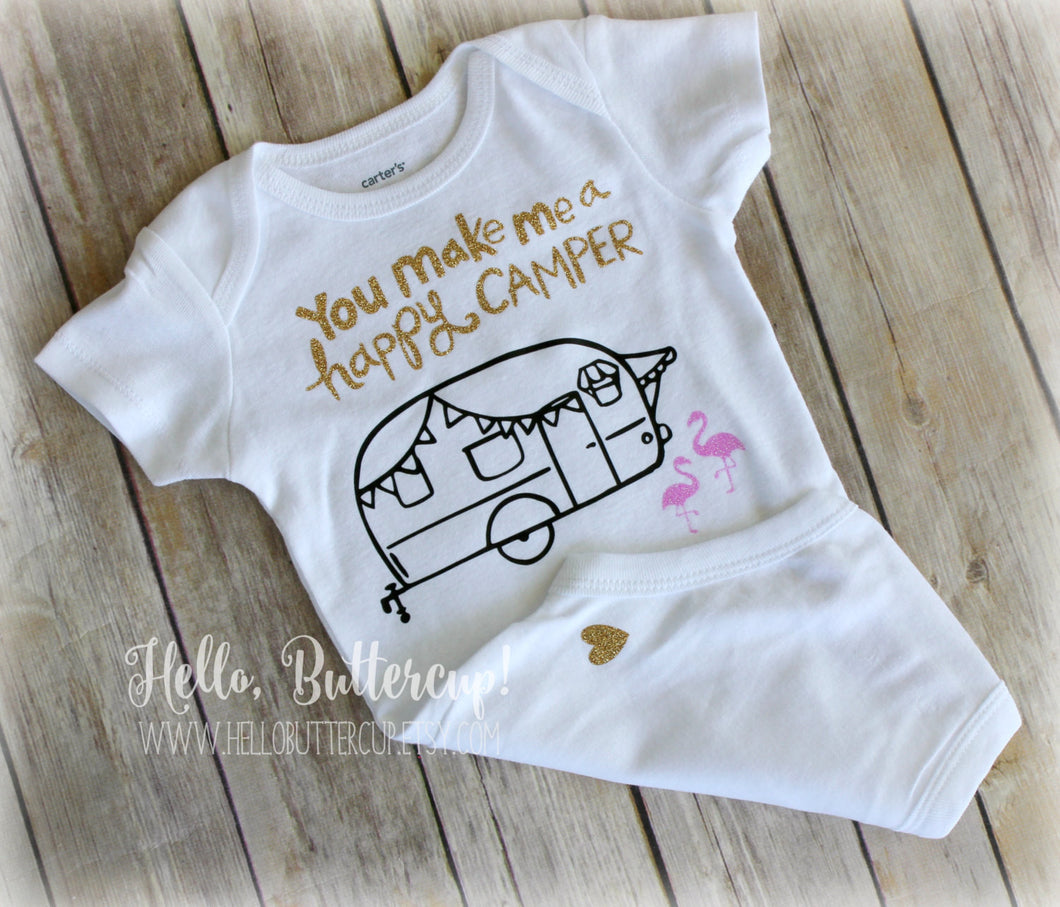 We use new Carters brand bodysuits and add a custom designed commercial heat set applique.This can be made in any color you choose. See chart for options, if no color change is requested with purchase it will be made with black vinyl as shown.